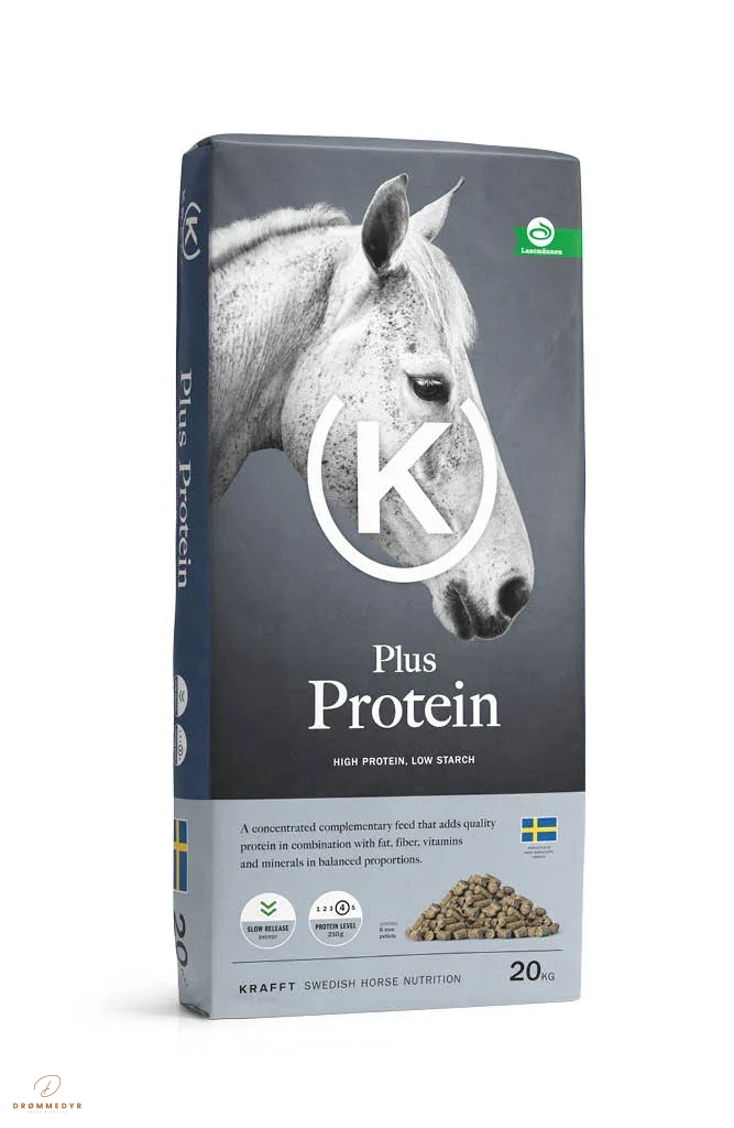 Krafft Plus Protein er et koncentreret tilskudsfoder, udviklet til heste med et øget behov for protein. Foderet indeholder letfordøjeligt protein af høj kvalitet samt essentielle aminosyrer, som understøtter muskelopbygning, vækst og restitution.