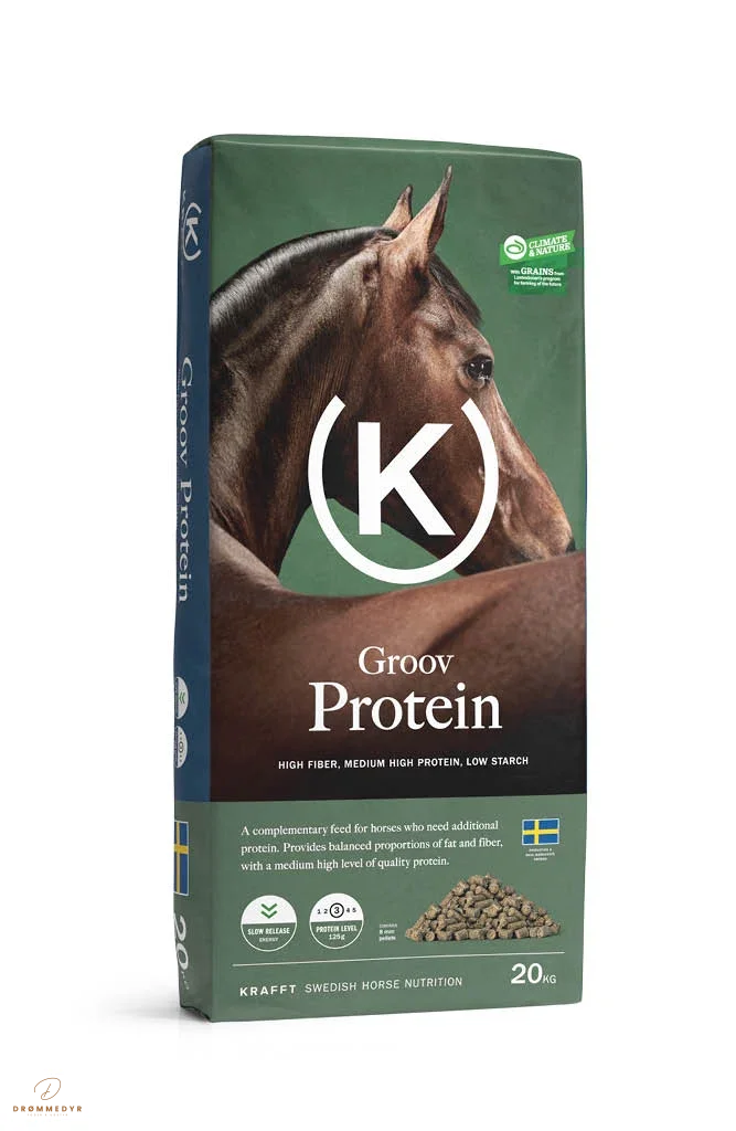 Krafft Groov Protein er et pelleteret tilskudsfoder med ekstra højt proteinindhold, der understøtter muskelopbygning, vækst og restitution. Det er sammensat af kvalitetsråvarer med letfordøjeligt protein, essentielle aminosyrer, vitaminer og mineraler.