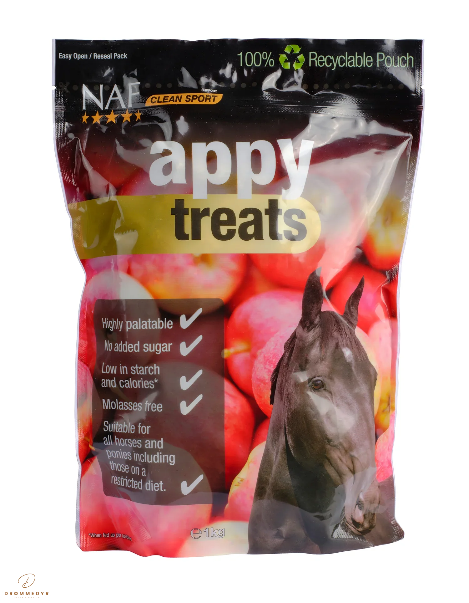 Forkæl din hest med de lækre NAF Appy Treats – naturlige godbidder med den skønne smag af æble. De er lavet uden kunstige farvestoffer eller tilsætningsstoffer og er en sund og velsmagende måde at vise din hest lidt ekstra kærlighed på.