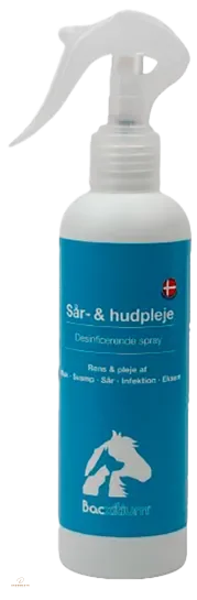 Bacxitium Mud Fever & Wound Care er en desinficerende og plejende spray, der hjælper med at behandle muk, sår og hudirritationer hos heste, hunde og andre dyr. Den praktiske sprayflaske gør det nemt at påføre produktet direkte på det berørte område uden berøring. Formlen reducerer risikoen for infektion, understøtter heling og danner en beskyttende barriere mod snavs og fugt.