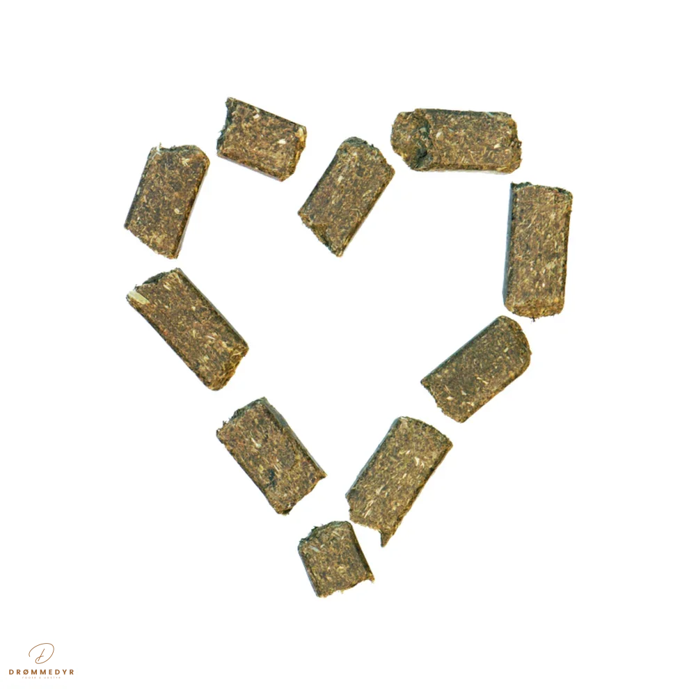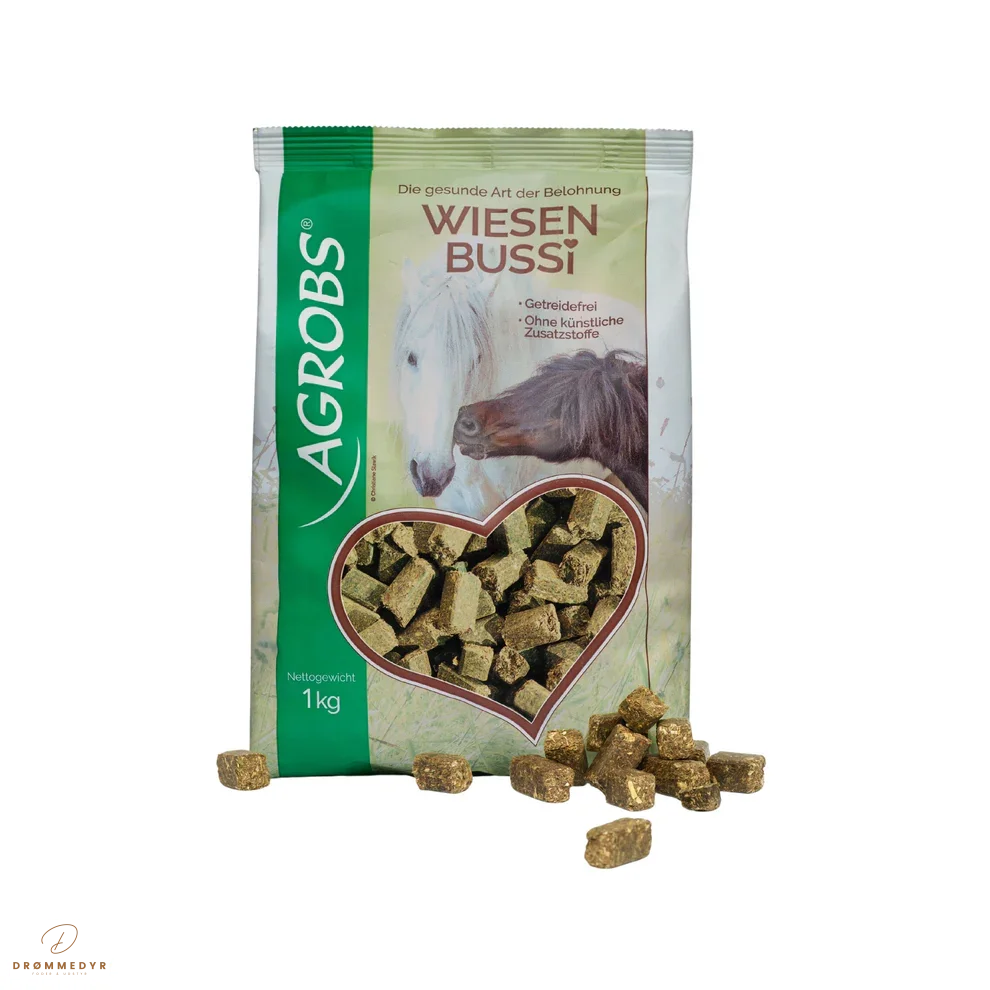 AGROBS WiesenBussi er velsmagende og sunde godbidder til heste og ponyer, fremstillet af naturlige engurter, blomster og urter i høj kvalitet. De små, bløde snacks er helt uden korn, melasse og kunstige tilsætningsstoffer, hvilket gør dem ideelle til daglig belønning med god samvittighed. Perfekte til træning, hygge og forkælelse.