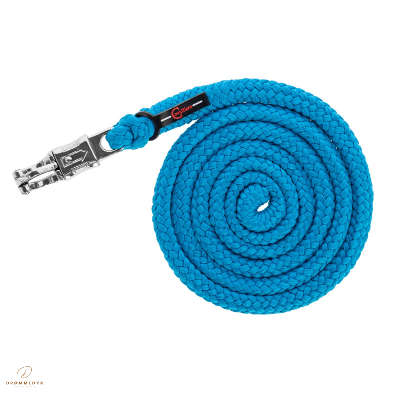 Covalliero træktov i blå er et stærkt, pålideligt og behageligt tov til daglig håndtering af hesten. Det flettede materiale ligger godt i hånden og giver et sikkert greb, samtidig med at det er slidstærkt nok til både stald, fold og transport.