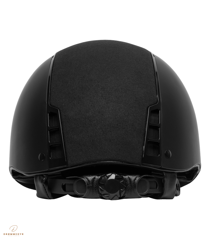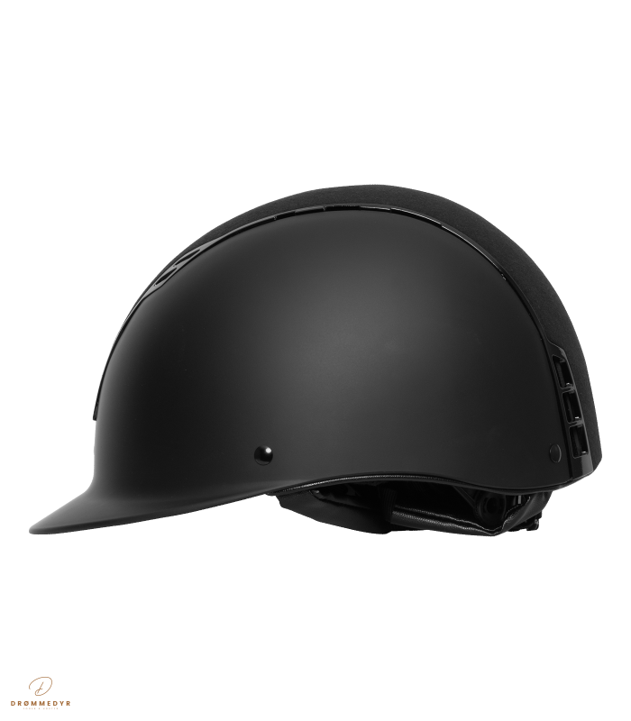 SWING H22 er en stilren og moderne ridehjelm, designet med fokus på både sikkerhed og komfort. Hjelmen har en mat sort overflade kombineret med elegante detaljer i sort velour, som giver et eksklusivt og tidløst udtryk.