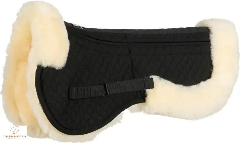 Oversiden er beklædt med ægte lammeskind, som sikrer høj komfort, god åndbarhed og naturlig temperaturregulering. Den formede kant bidrager til stabil placering under sadlen og mindsker risikoen for, at padden glider.
