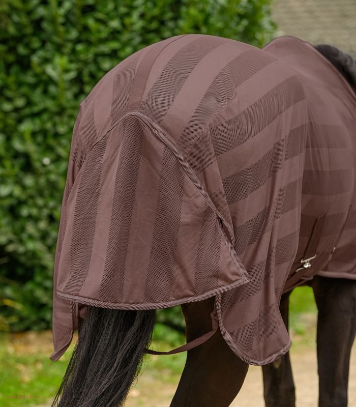 Dækkenet er fremstillet i et let og åndbart mesh-materiale, som giver god ventilation og komfort på varme dage. Den enkle og funktionelle pasform gør det velegnet til både fold og stald.