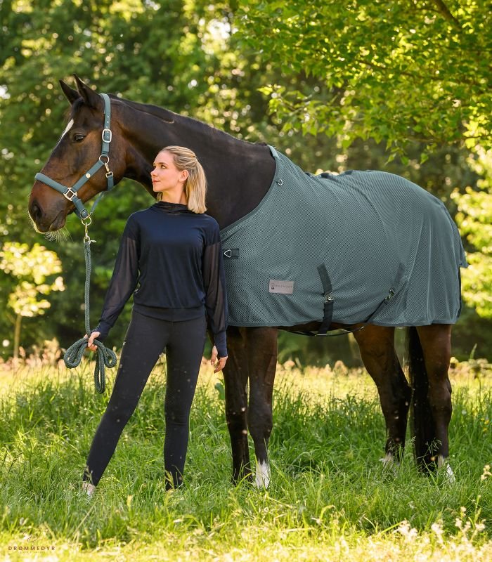 Let og funktionelt fludækken fra Waldhausen, der hjælper med at beskytte hesten mod fluer, myg og andre irriterende insekter på varme dage.
