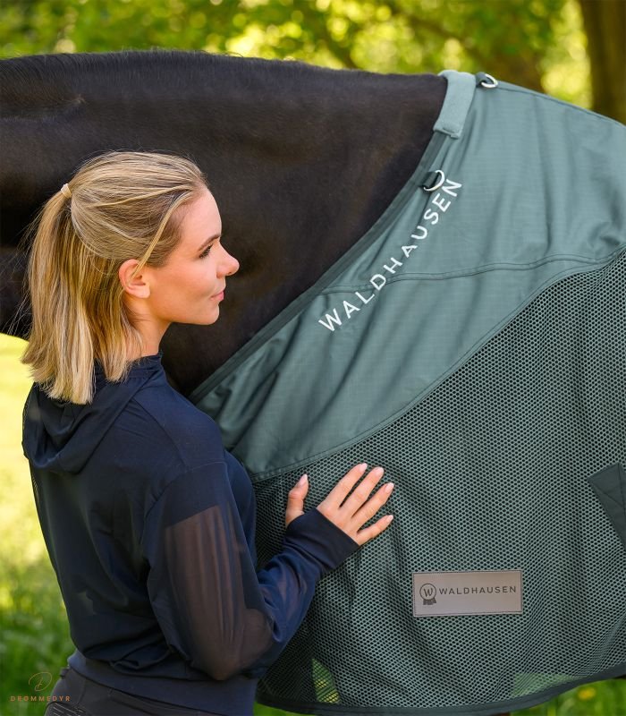 Praktisk regn- og fluedækken fra Waldhausen, der beskytter hesten mod både regn og insekter på skiftende sommerdage. Tæppet er designet med en vandafvisende rygdel, som holder hestens ryg tør, mens de lette og åndbare sider hjælper med at holde fluer og andre insekter væk.