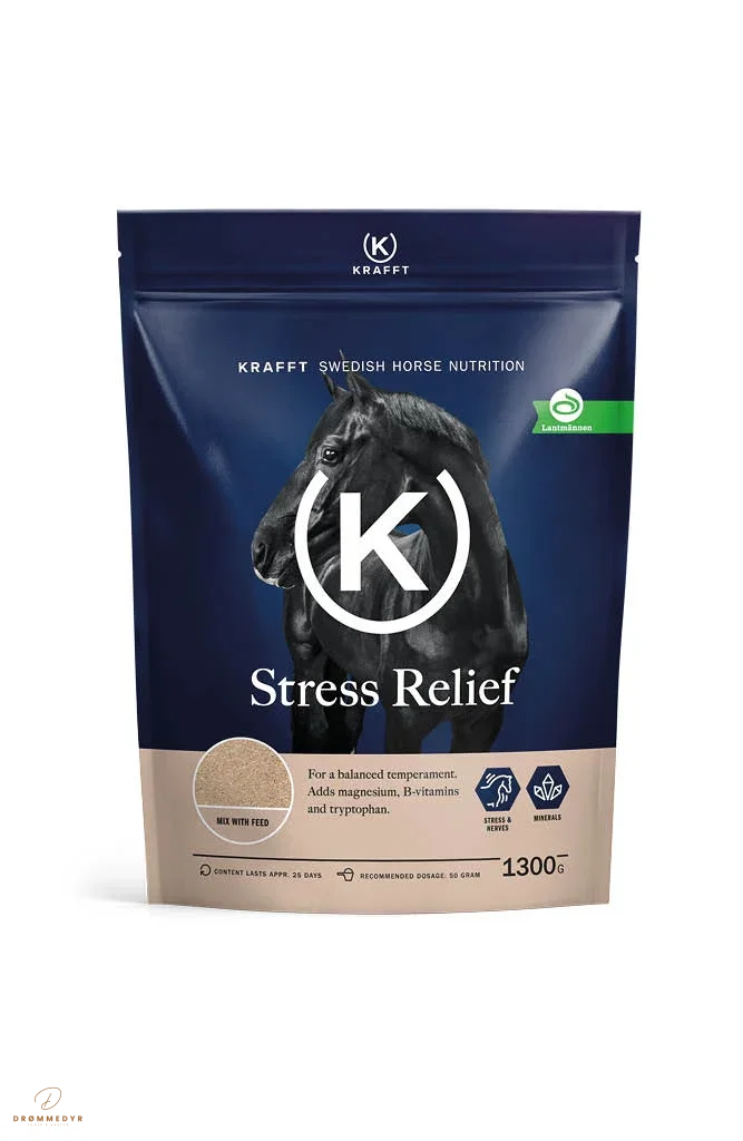 Krafft Stress Relief er et tilskudsfoder til heste, der hjælper med at dæmpe uro, spændinger og stress i pressede situationer. Produktet indeholder nøje udvalgte ingredienser, som understøtter et stabilt nervesystem og bidrager til øget mental balance.
