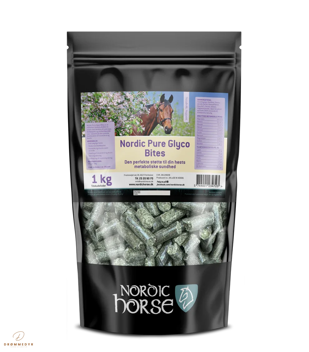 Nordic Pure Glyco Bites er det ideelle valg til heste, der kæmper med overvægt, fedtdepoter eller insulinfølsomhed. Et naturligt tilskud med resveratrol og leucin, som i kombination understøtter hestens stofskifte, energiomsætning og fedtforbrænding.