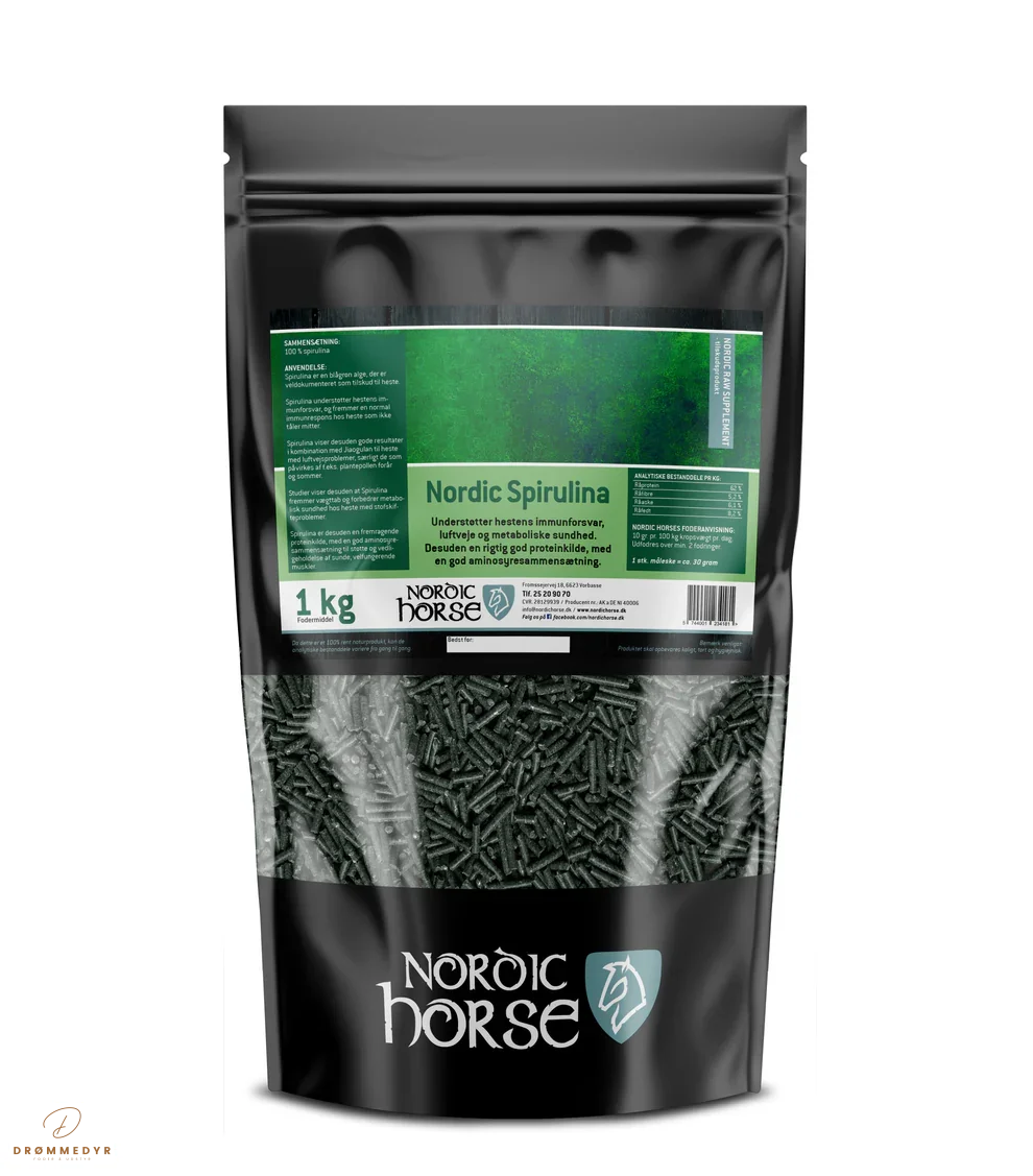 • Spirulina er en blågrøn alge, der er veldokumenteret som tilskud til heste.