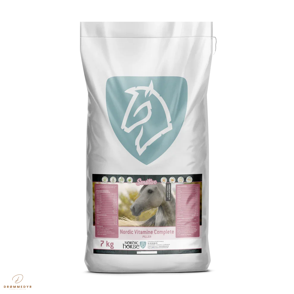 Nordic Vitamin Complete er desuden tilsat lysin, methionin og threonin (essentielle aminosyrer). Disse aminosyrer kaldes også for de begrænsende aminosyrer, da de resterende aminosyrer hesten indtager ikke kan udnyttes hvis hesten mangler disse tre i foderet. Mange heste får ikke nok kvalitetsprotein, og dermed essentielle aminosyrer, hvilket viser sig som manglende muskelsætning, vækstproblemer, dårlige hove osv. Ved tildeling af Vitamin Complete sikrer du ikke bare et optimalt indtag af vitaminer, mineraler og sporstoffer, men også en optimal tilførsel af essentielle aminosyrer, som indgår i mange af kroppens vigtige funktioner.
