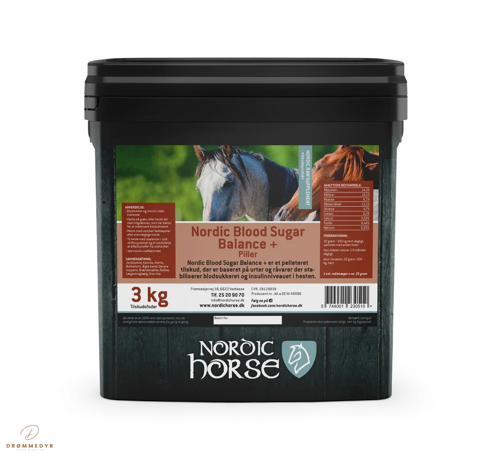 Nordic Blood Sugar Balance + indeholder urtebaserede råvarer der sikrer en stabilisering af hestens blodsukker og insulin niveau. Produktet er sammensat med henblik på tildeling til de heste, der har problemer med stofskiftet, og som er i risikogruppen for negative følgesymptomer heraf. Gavnlig til overvægtige heste, som skal tabe sig.