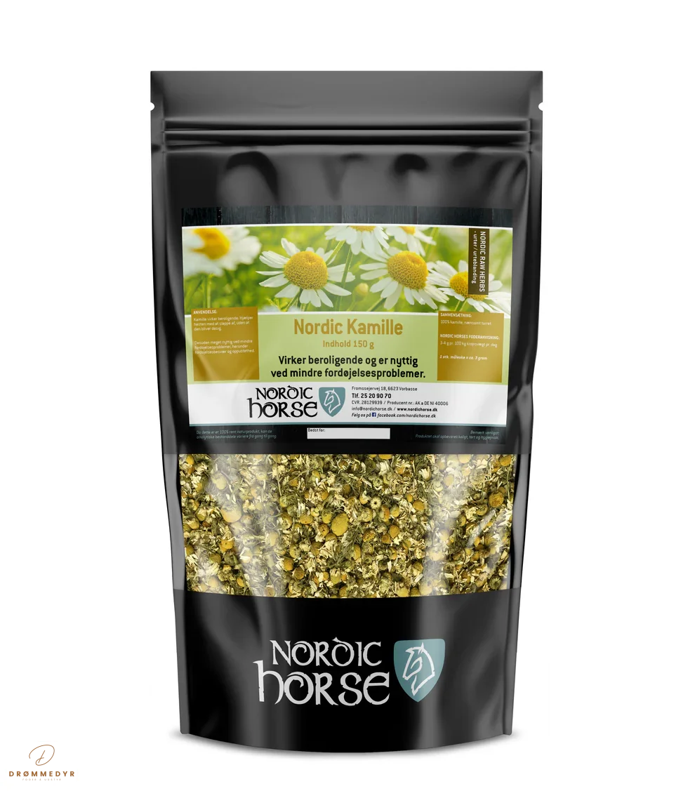 Kamille virker beroligende. Hjælper hesten med at slappe af, uden at den bliver døsig.