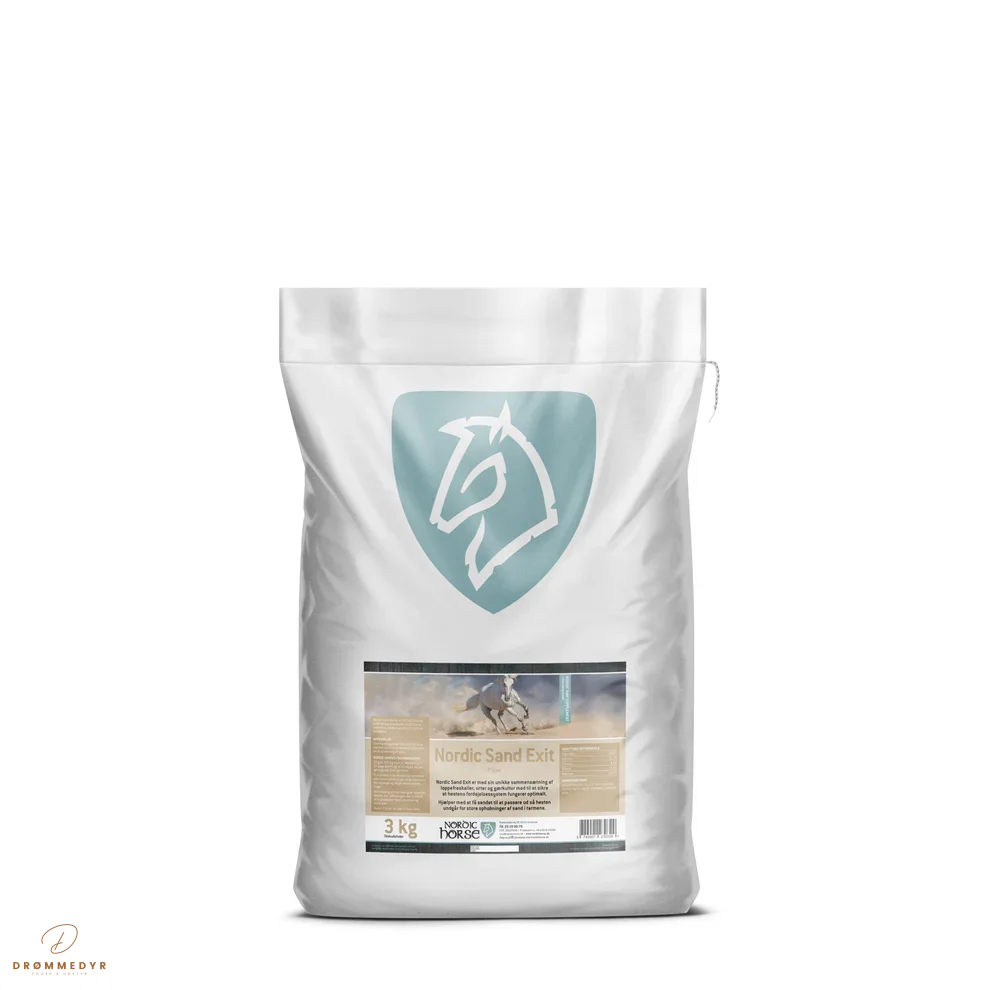 Nordic Sand Exit er et effektivt tilskud, som hjælper med at få sandet til at passere ud så hesten undgår for store ophobninger af sand i tarmene.