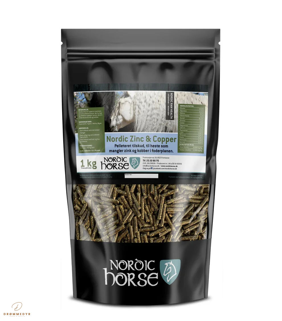 Nordic Zinc & Copper er sammensat af kvalitetsråvarer, der hurtigt og effektivt hjælper hesten der er i underskud af zink og kobber. Tilskuddet er også særdeles anvendeligt til udligning af stråfoder med et skævt forhold mellem jern, kobber, zink og mangan. Man anbefaler et forhold på: 4:1:3:3 (Jern:Kobber:Zink:Mangan)