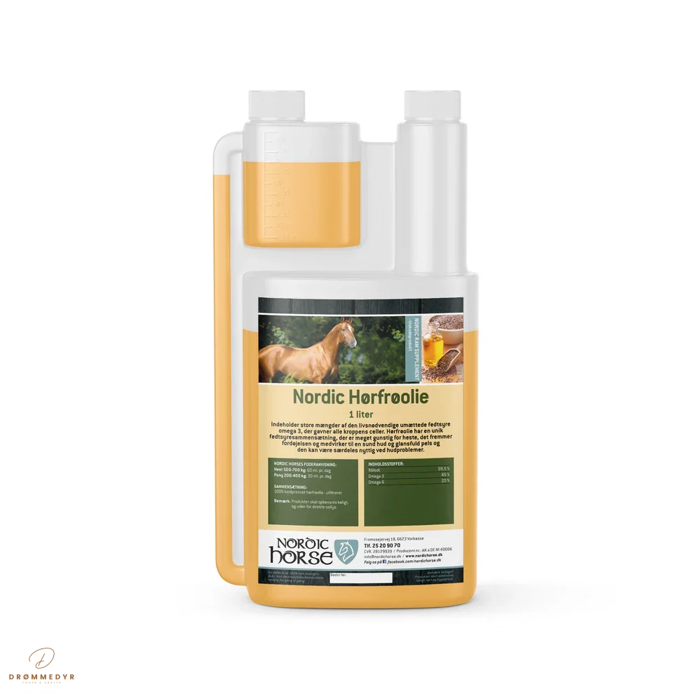 Hørfrøolie har en unik fedtsyresammensætning, der er meget gunstig for heste. Olien fremmer fordøjelsen og medvirker til en sund hud og glansfuld pels.