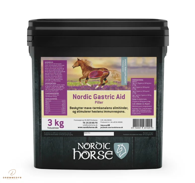 Med et højt indhold af antioxidanter, aminosyrer, tanniner og andre aktive plantestoffer, har Nordic Gastric Aid en beskyttende og styrkende effekt på hele hestens mave- tarmsystem. Desuden stimuleres hestens immunrespons, så kroppens naturlige helingsmekanismer aktiveres og understøttes.