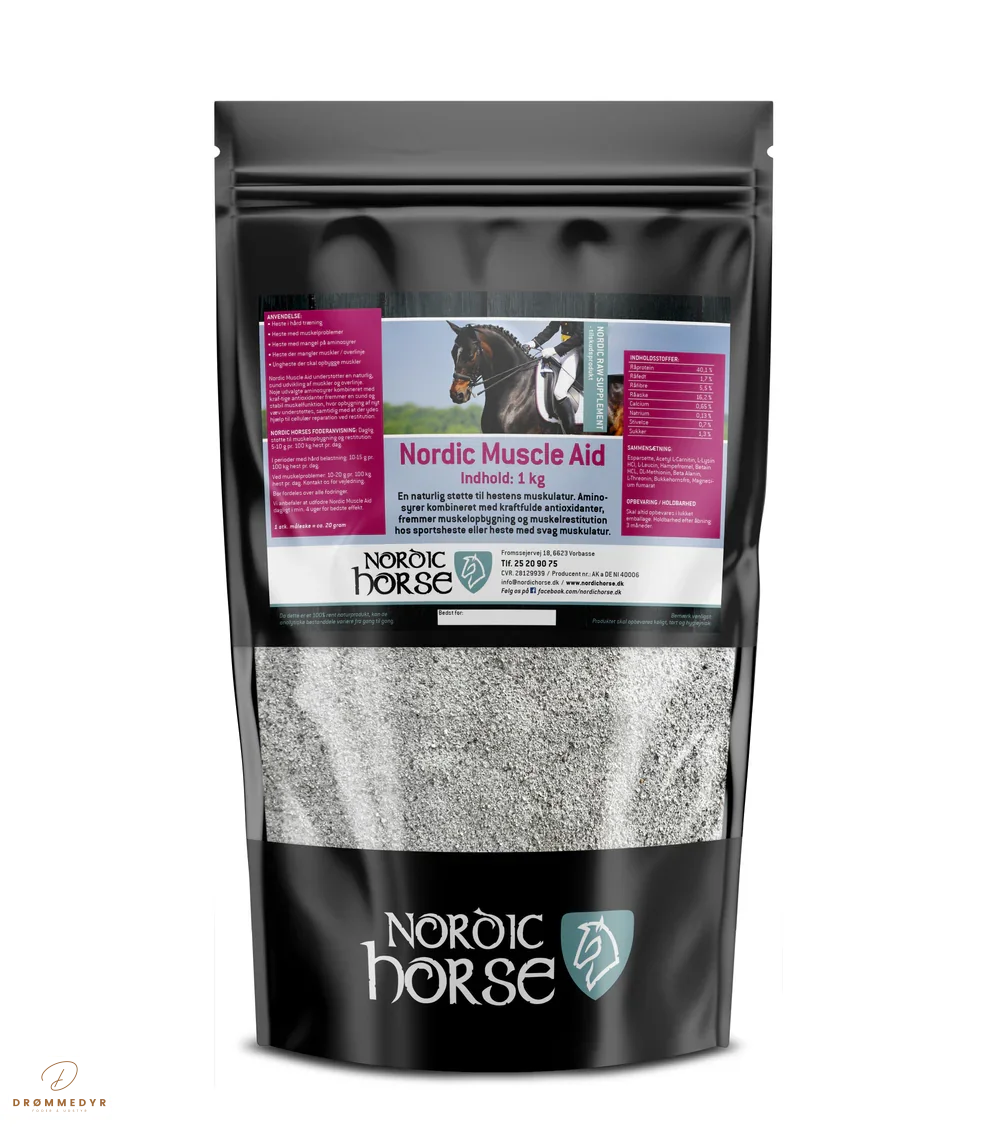 Nordic Muscle Aid er nøje sammensat med henblik på den bedst mulige støtte til hestens muskler. Produktet fokuserer i høj grad på tilførsel af essentielle aminosyrer, men indeholder også andre råvarer som i kombination med hinanden, er med til at fremme den muskelfunktion, som ofte ligger til grund for muskeltab, manglende opbygning af muskler og træningsrelaterede muskelømheder.