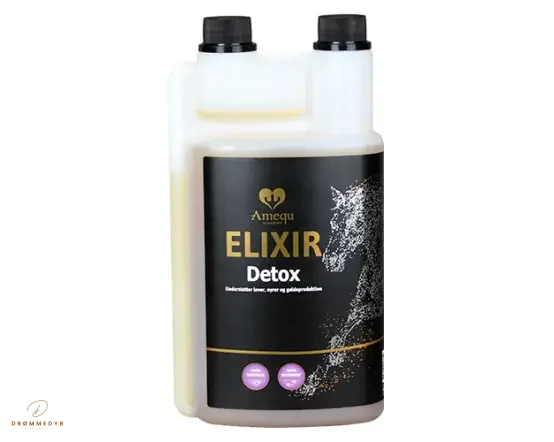 Amequ Detox Elixir er et flydende tilskud, sammensat af nøje udvalgte urter, der understøtter hestens naturlige udrensningsprocesser. Eliksiren bidrager til at styrke lever- og nyrefunktion, fremme fordøjelsen og skabe bedre balance i kroppen.