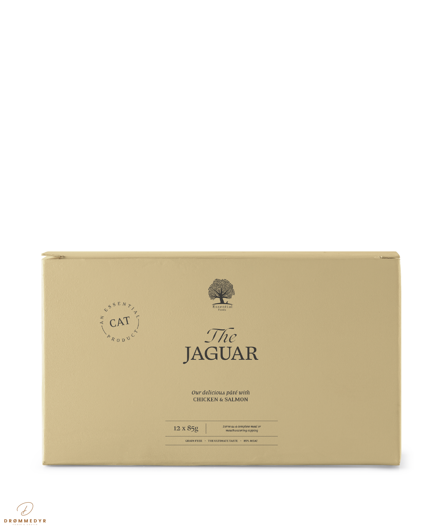 En eksklusiv og kornfri paté med kylling, and og laks – skabt til voksne katte, der fortjener det bedste. ESSENTIAL The Jaguar Pâté er et fuldfoder af høj kvalitet, der kombinerer saftigt kød og fisk for at give din kat en naturlig, proteinrig og uimodståelig smagsoplevelse.