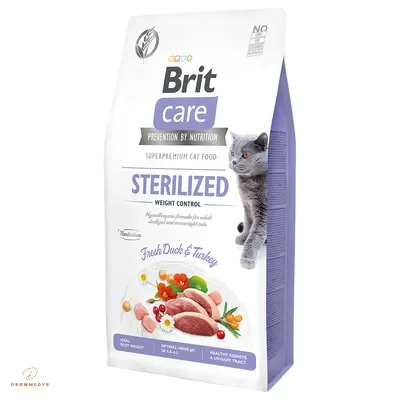 Brit Care GF Sterilized Weight Control er et kornfrit kattefoder, udviklet til steriliserede/kastrerede katte, som har tendens til overvægt. Opskriften er baseret på letfordøjelige proteiner og ingredienser med lavt fedtindhold, som hjælper katten med at holde en sund vægt – uden at gå på kompromis med mæthed og smag.