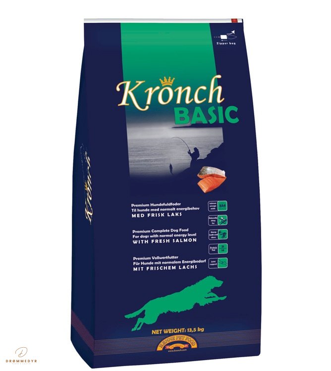 Kronch Basic er et velsmagende og afbalanceret hundefoder, baseret på frisk, koldpresset laks som hovedingrediens. Den naturlige kilde til omega-3 og omega-6 fedtsyrer understøtter en sund hud, blank pels og stærke led.