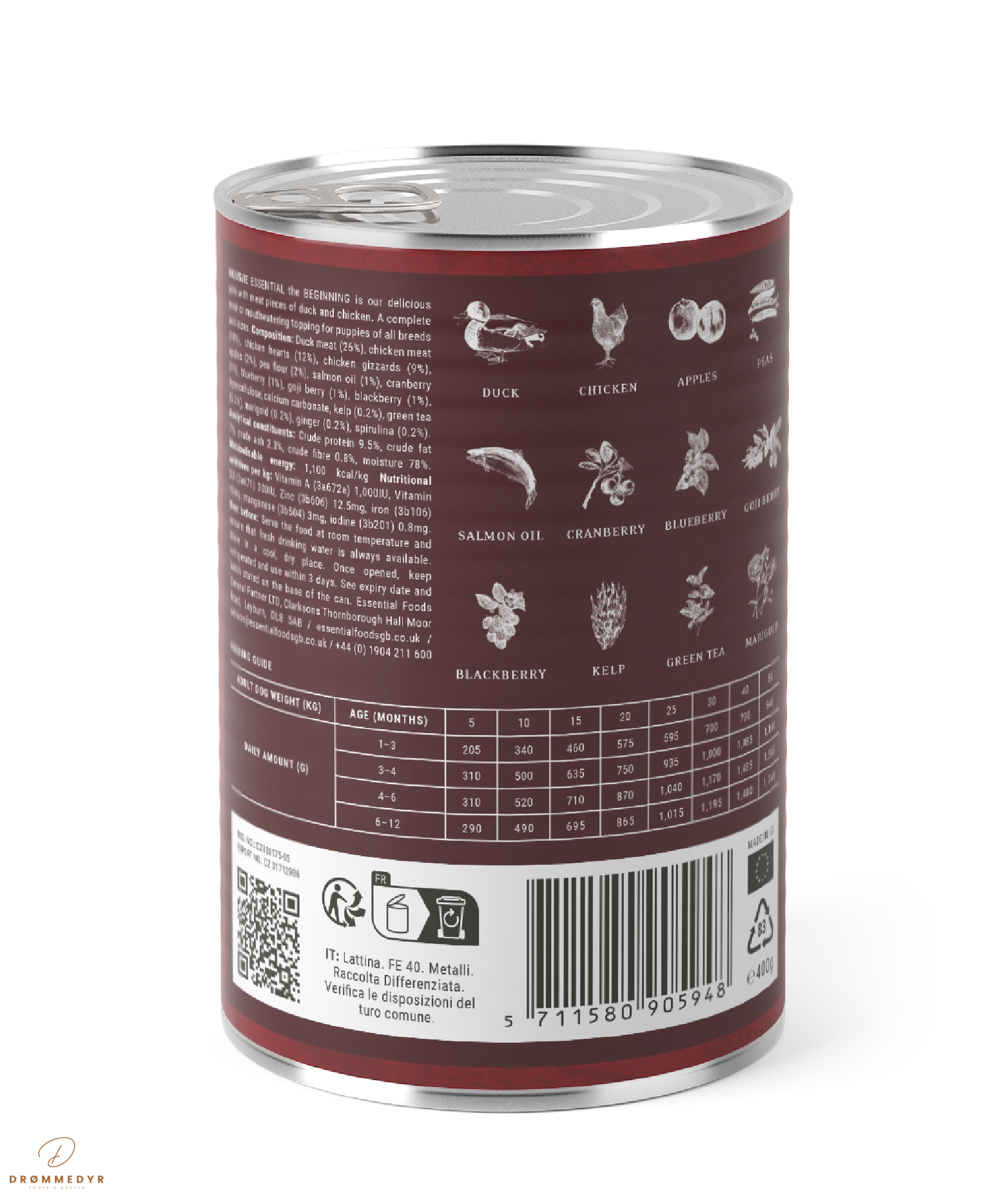En nænsom og naturlig paté udviklet specielt til hvalpe. ESSENTIAL The Beginning Pâté er et kornfrit fuldfoder med kylling, and og æg – skræddersyet til at støtte en sund vækst og udvikling fra starten af livet.