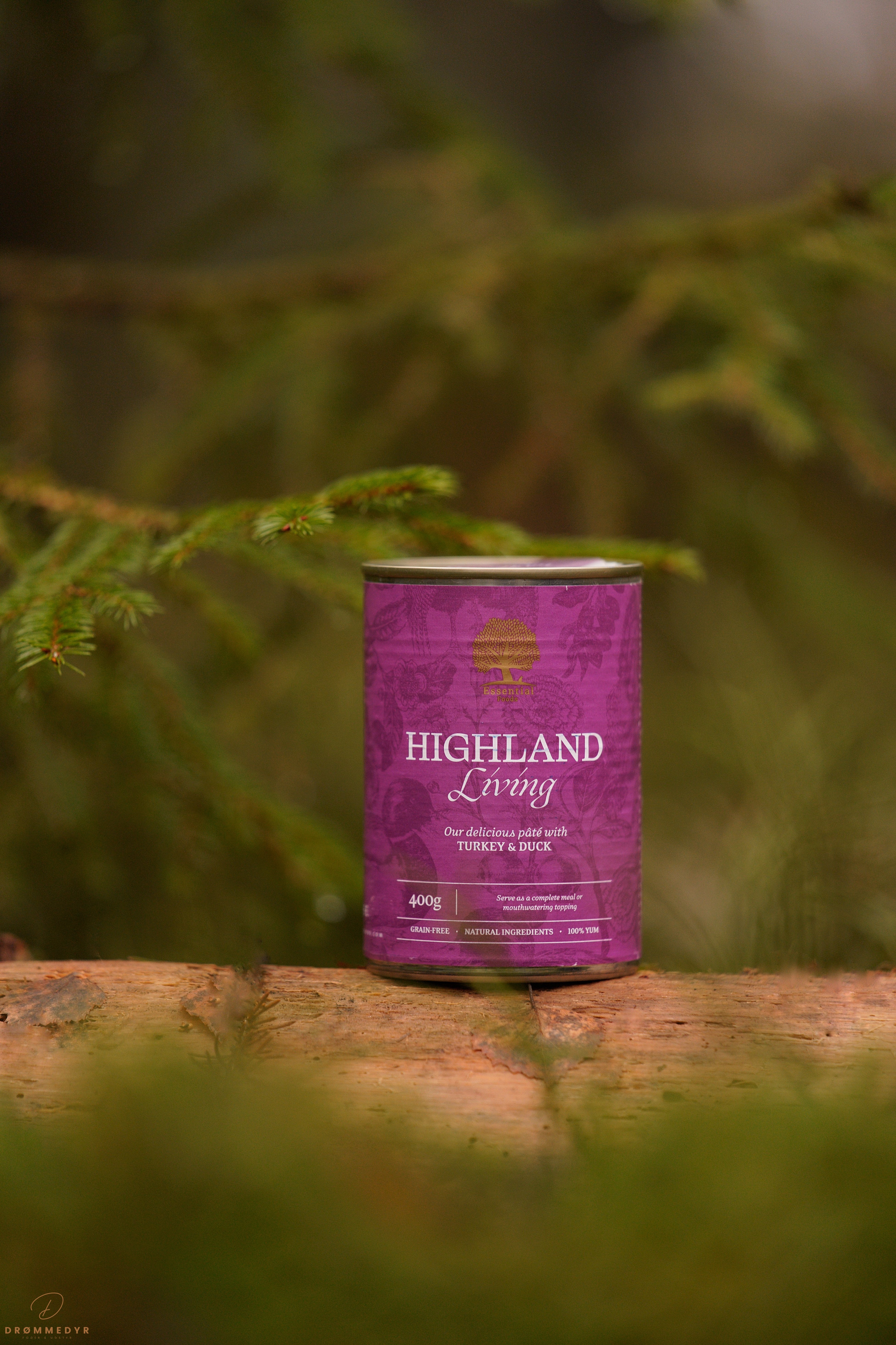 ESSENTIAL Highland Living Pâté er et lækkert og fuldfoder til hunde, inspireret af de skotske højlande. Den kombinerer saftigt kød fra and, kylling og lam med friske grøntsager og urter – til en naturlig og nærende oplevelse, som selv den mest kræsne hund vil elske.