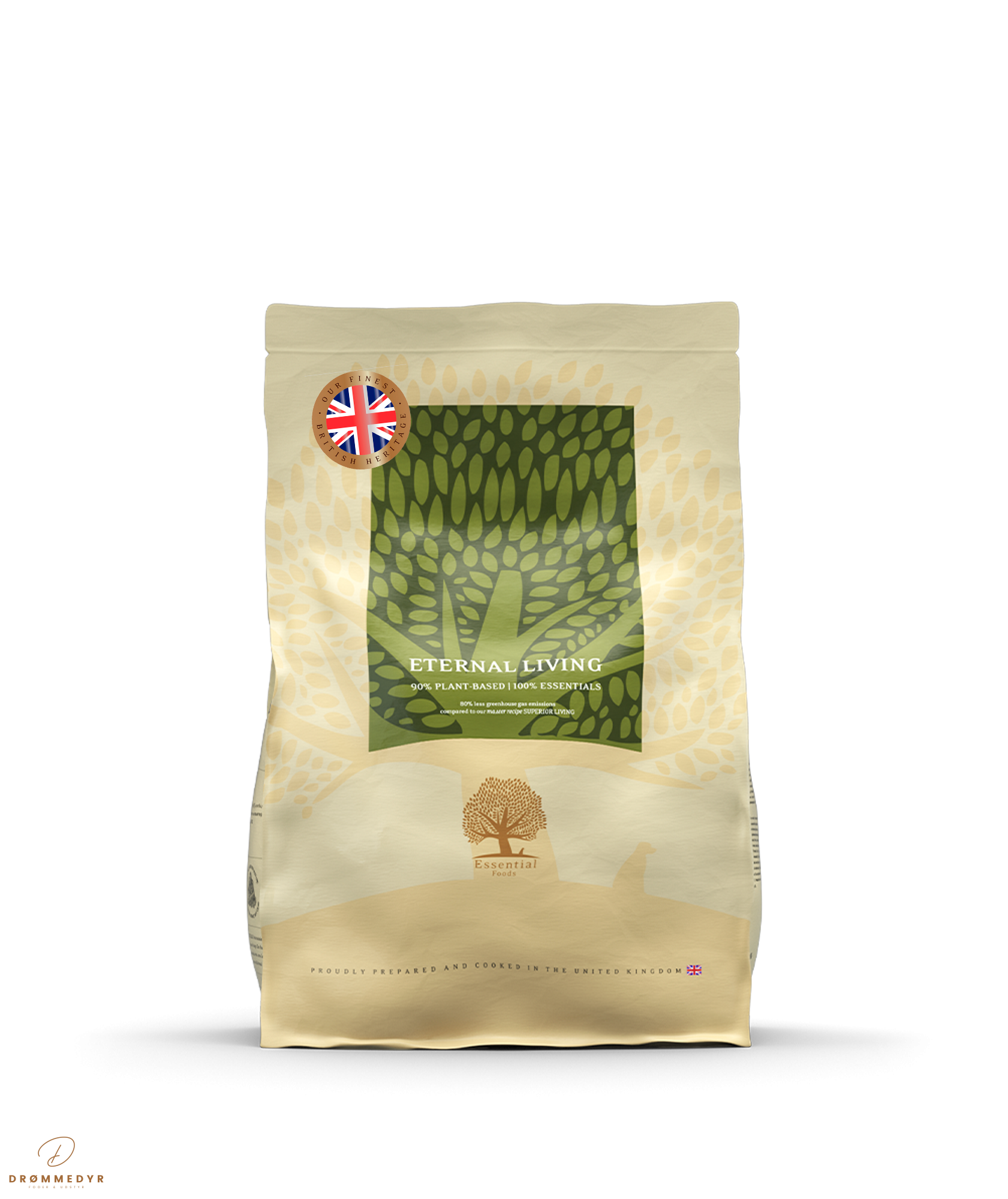 ESSENTIAL Eternal Living er et kornfrit fuldfoder skabt til voksne hunde, der fortjener et måltid med ekstra fokus på langtidssundhed og naturlig trivsel. Opskriften er baseret på friske råvarer af høj kvalitet og en nænsomt afbalanceret kombination af kød, grøntsager, frugter og urter – sammensat for at støtte et stærkt immunforsvar, sund fordøjelse og stabil energi dagen igennem.