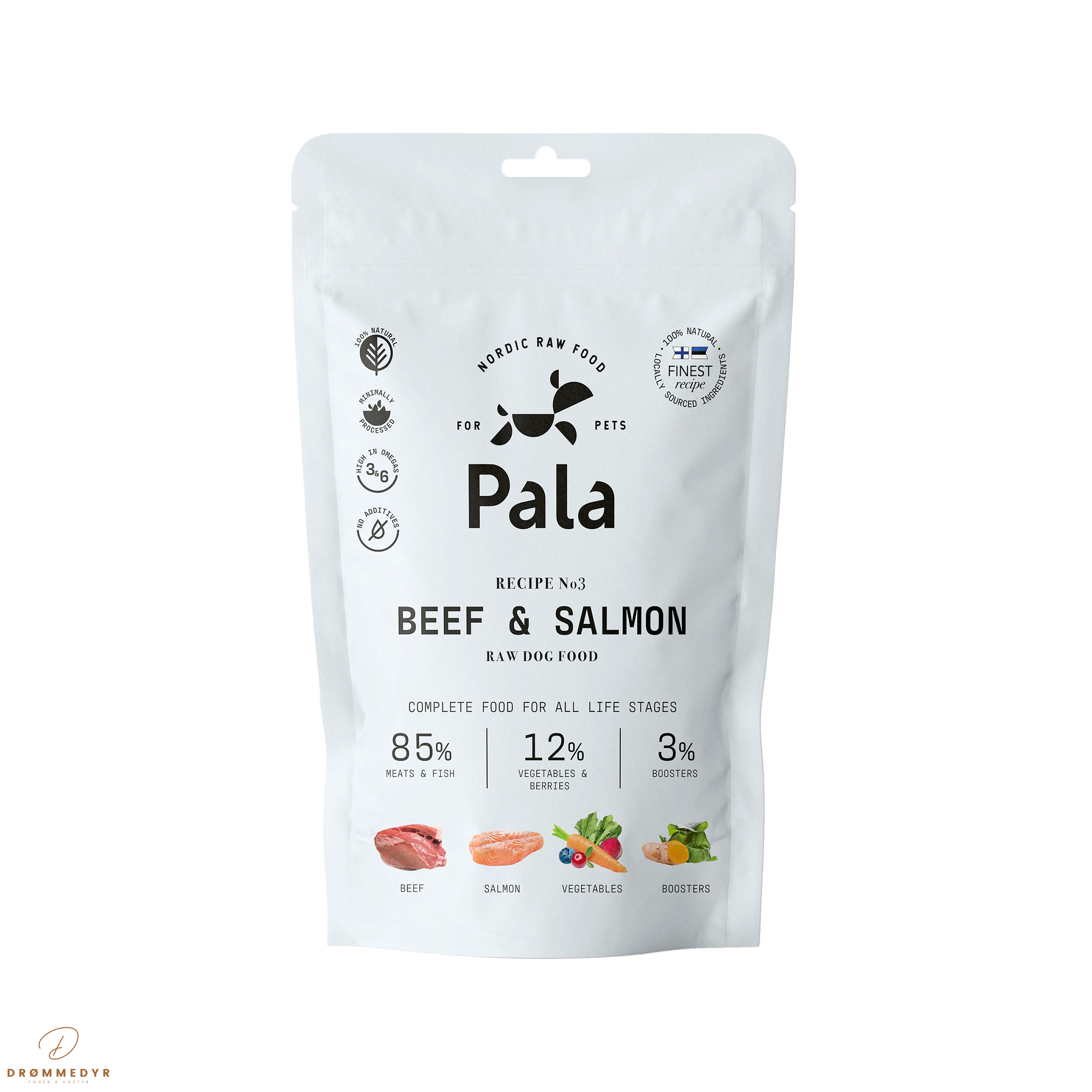 Pala Recipe No. 3 er et lufttørret BARF-foder baseret på oksekød og laks, sammensat for at give hunden et naturligt, proteinrigt og næringsbalanceret måltid. Råvarerne er skånsomt lufttørret for at bevare smag og næringsstoffer bedst muligt.