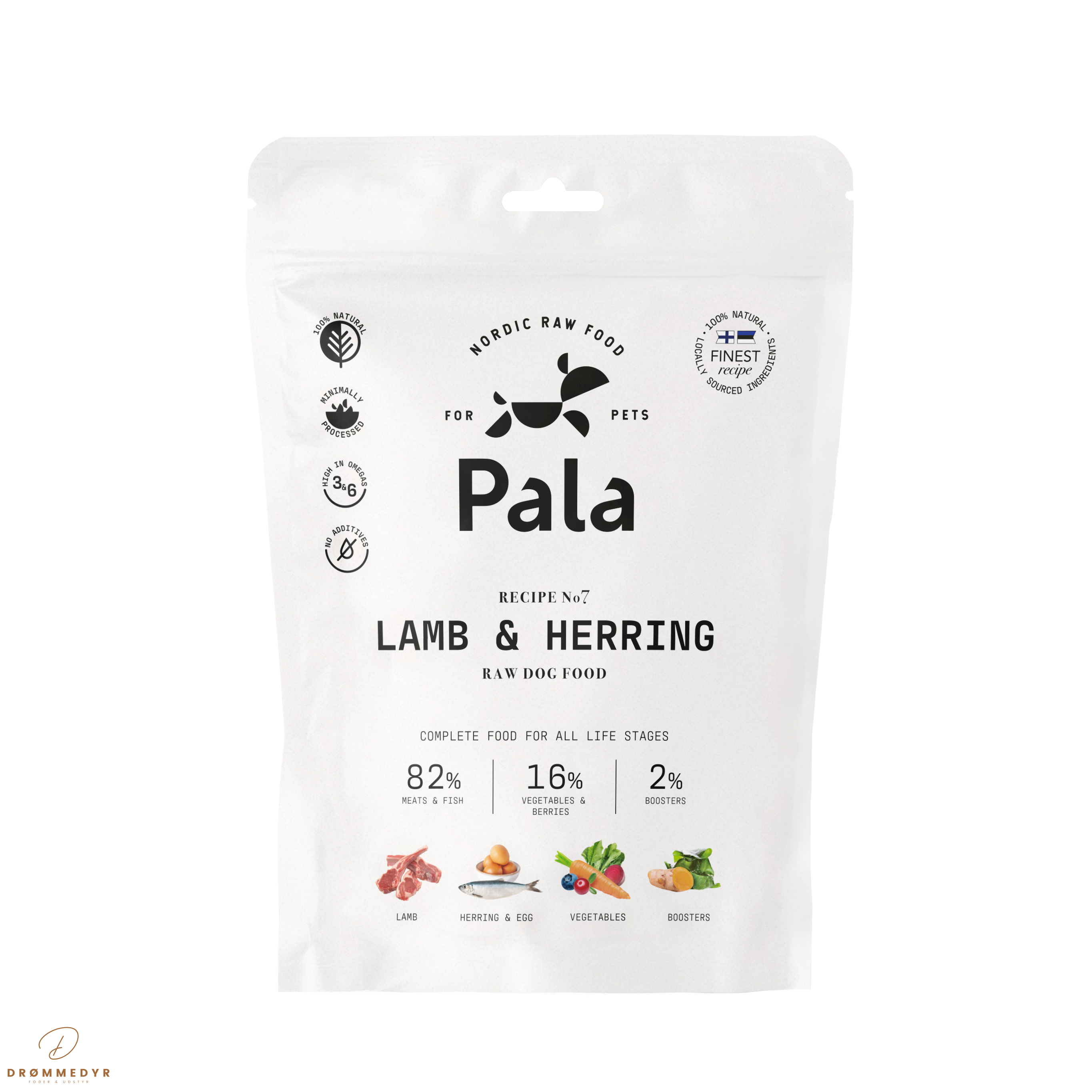 Pala Recipe No. 7 er et lufttørret BARF-foder med lam og sild, udviklet til hundeejere, der ønsker et naturligt foder med høj ernæringsværdi. Opskriften kombinerer animalske proteiner med grøntsager, bær og urter for et balanceret og smagfuldt måltid.