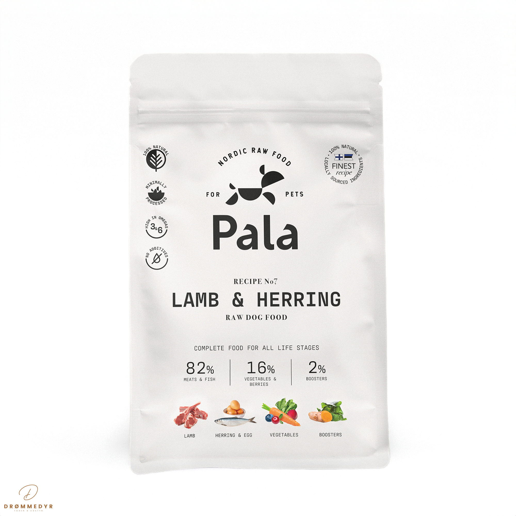 Pala Recipe No. 7 er et lufttørret BARF-foder baseret på lam og sild, sammensat for at give hunden et naturligt, smagfuldt og næringsrigt måltid. Lufttørringen sikrer, at råvarernes naturlige egenskaber bevares bedst muligt.
