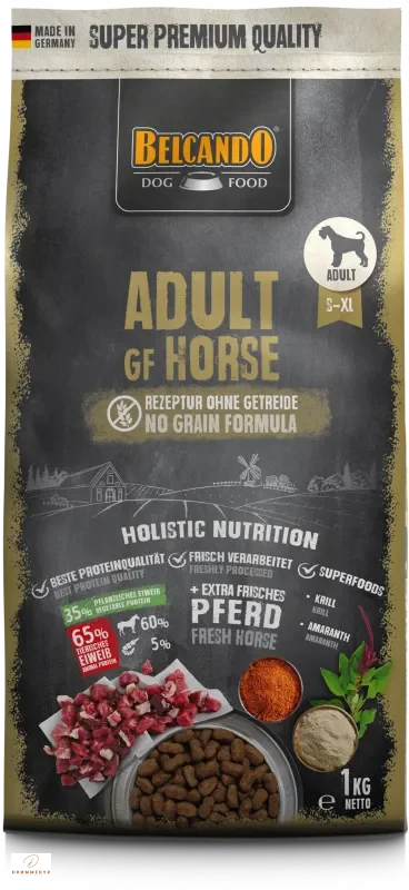 Med ekstra frisk hestekød og udvalgte ingredienser tilbyder BELCANDO Adult GF Horse en helt særlig nydelse for hunde. Takket være den kornfri opskrift og det velsmagende, eksklusive kød er dette tørfoder særligt velegnet til følsomme firbenede venner. Værdifulde ingredienser indeholder næringsstoffer, som kan bidrage til hundens vitalitet og velvære. Amarant som et kvalitetsalternativ til korn leverer vigtige nærings- og vitalstoffer, og kombinationen med krill, en værdifuld kilde til omega-3-fedtsyrer, skaber en særligt afbalanceret opskrift.