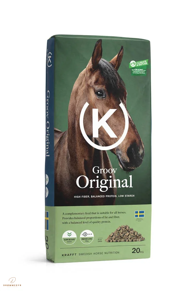 Med Krafft Groov Original får du et alsidigt og velsmagende foder, der sikrer din hest en afbalanceret og sund ernæring til hverdag.
