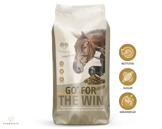 Med Amequ Go For The Win får du et kraftfuldt, men skånsomt foder, der kombinerer energi, styrke og sundhed – så din hest kan yde sit bedste hver gang.