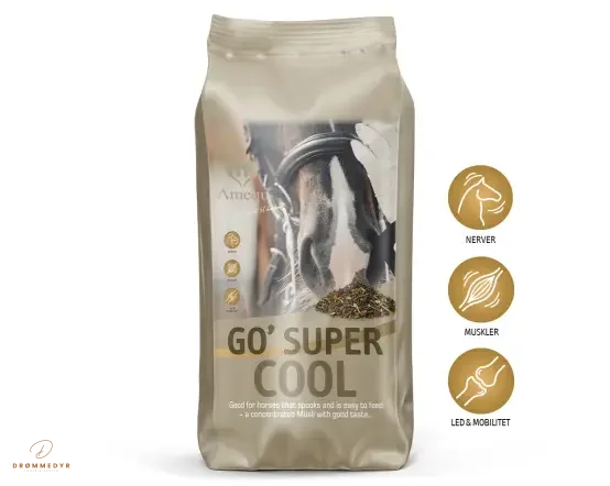 Amequ Go Super Cool er et korn- og melassefrit fuldfoder, udviklet til heste med tendens til at blive for “varme” eller energiske på traditionelt foder. Foderet har et lavt indhold af stivelse og sukker og er i stedet baseret på fibre, olie og urter, som giver en rolig og stabil energiforsyning.