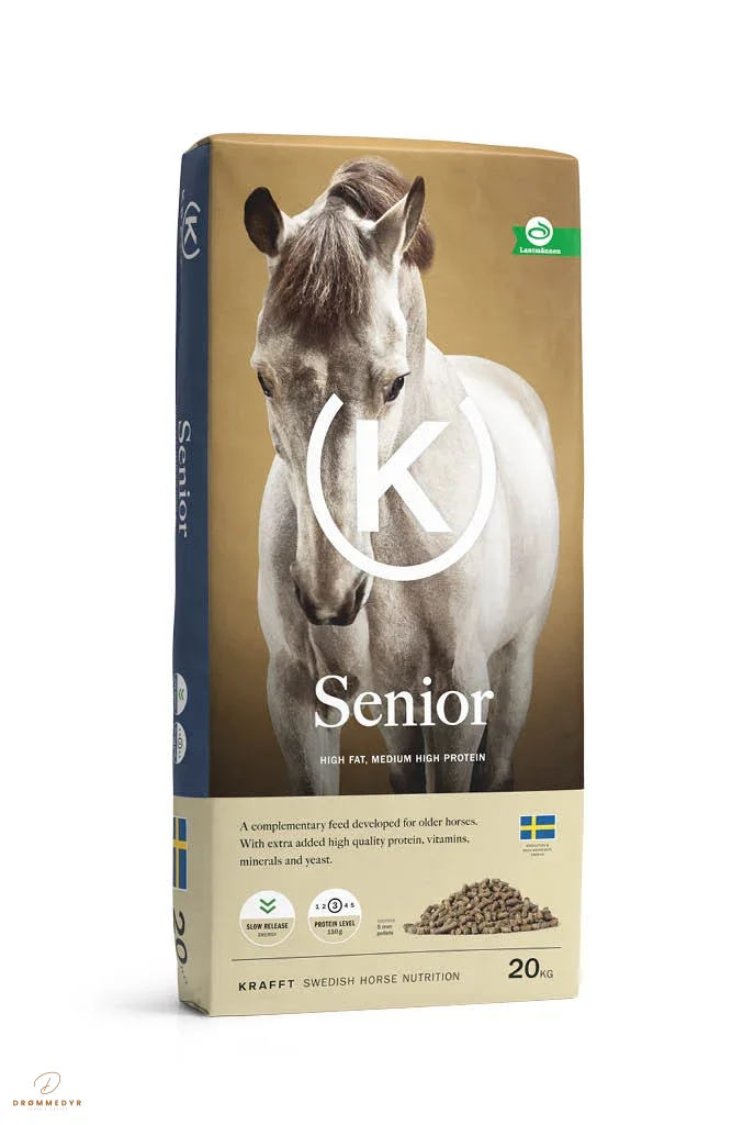 Krafft Senior er et specialudviklet fuldfoder til ældre heste, der har brug for ekstra støtte til at bevare huld, muskler og trivsel. Foderet indeholder letfordøjelige fibre, kvalitetsprotein samt tilsat olie, som giver en skånsom og stabil energiforsyning.
