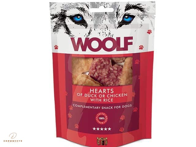 Bløde og velsmagende små hjerteformede godbidder! Woolf Hearts of Duck and Chicken with Rice kombinerer mørt ande- og kyllingekød med ris for en lækker og letfordøjelig snack.