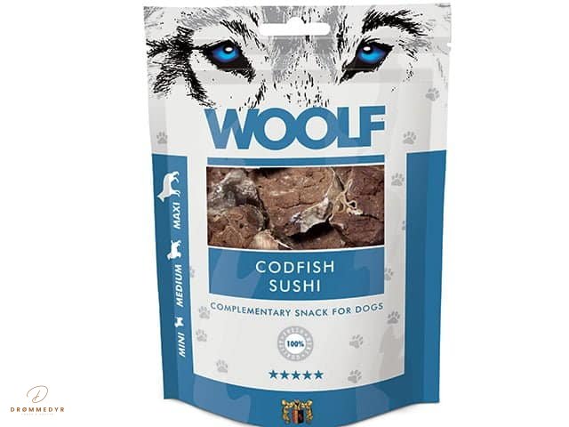 En sund og velsmagende snack til din hund! Woolf Codfish Sushi er små ruller lavet af torsk og kylling – en uimodståelig kombination af magert fisk og saftigt kød. Den bløde konsistens gør dem perfekte som belønning eller en lækkerbid i hverdagen.