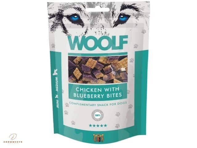 En lækker og sund snack til din hund! Woolf Chicken with Blueberry Bites er små, bløde godbidder lavet af saftig kylling kombineret med søde blåbær. Den perfekte balance mellem kød og frugt gør dem både velsmagende og næringsrige.