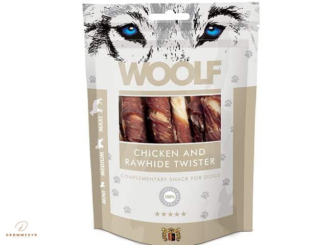 En lækker kombination af tyggeglæde og smag! Woolf Chicken & Rawhide Twister er lavet af naturligt råhud, snoet sammen med saftig kylling – en uimodståelig snack, der både aktiverer og forkæler din hund.