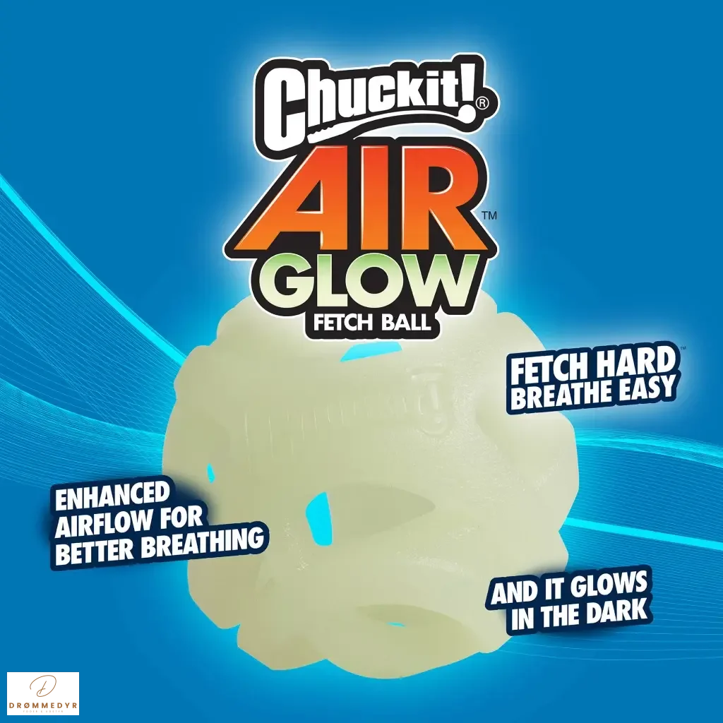 Gør leg og apporttræning endnu sjovere – både dag og nat! Chuckit! Air Glow Fetch Ball er en holdbar bold designet i letvægtsmateriale med hul struktur, der giver en ekstra sjov bounce og gør det nemt for hunden at bære og trække vejret under legen.