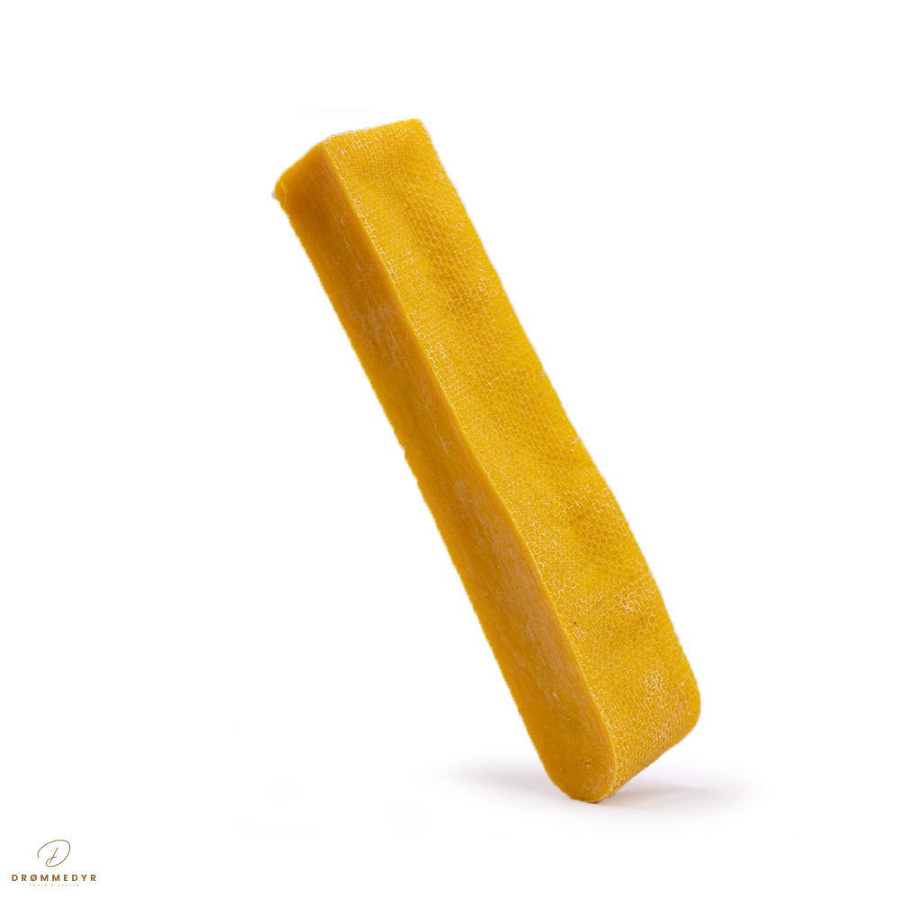 Yaki Gurkemeje er en hård og langtidsholdbar tygge lavet af mælk, tilsat gurkemeje for ekstra smag og sundhed. Gurkemeje er kendt for sine naturlige antiinflammatoriske egenskaber, der kan støtte led, muskler og immunforsvar. Den seje konsistens giver hunden lang tyggeglæde, samtidig med at tygningen hjælper med at rense tænderne og styrke tandkødet. En 100% naturlig snack uden kunstige tilsætningsstoffer – perfekt til mellemstore og store hunde, der elsker at tygge.