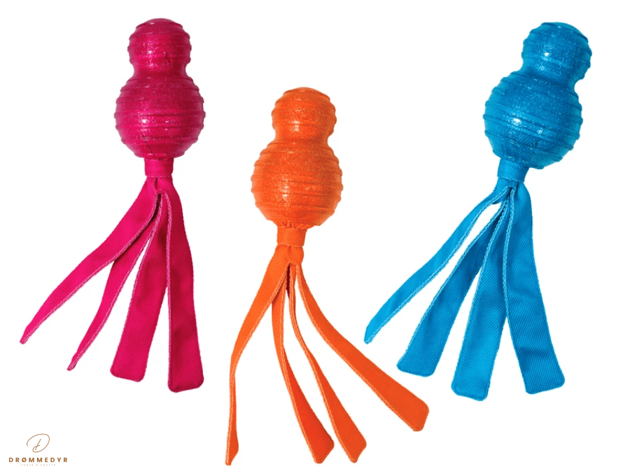 KONG Wubba Comet er det perfekte legetøj til hunde, der elsker at ruske, kaste og hente. Den robuste bold kombineret med de lange hale-bånd gør legen ekstra spændende og motiverer til aktiv leg.