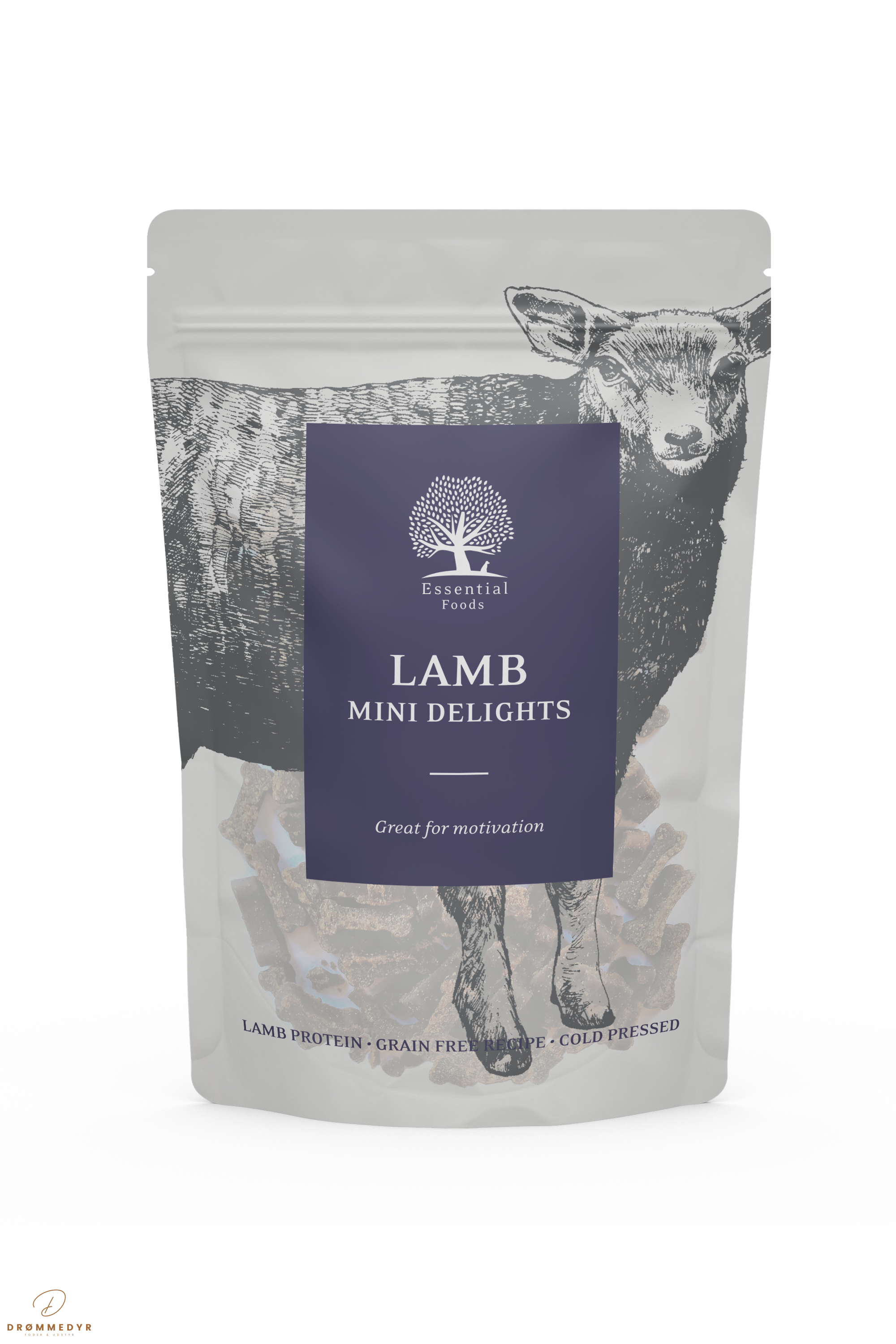 ESSENTIAL Lamb Mini Delights er små, kornfri godbidder lavet af mørt lammekød – en naturlig, proteinrig og uimodståelig snack, perfekt til træning, belønning eller som en lille forkælelse i hverdagen.