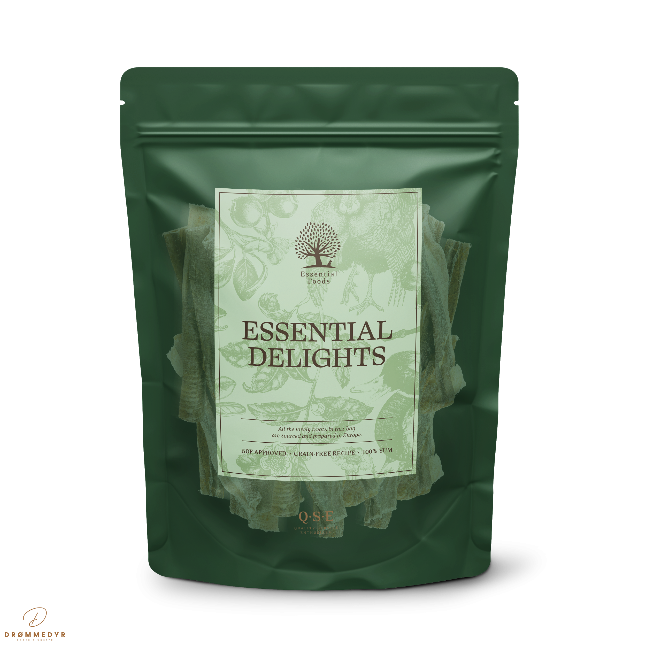 ESSENTIAL Iceland Fish Delights er naturlige, kornfri godbidder lavet af 100 % islandsk fisk – fyldt med smag, protein og sunde omega-3 fedtsyrer. En ren og ægte delikatesse, der styrker hud, pels og generel trivsel hos din hund.