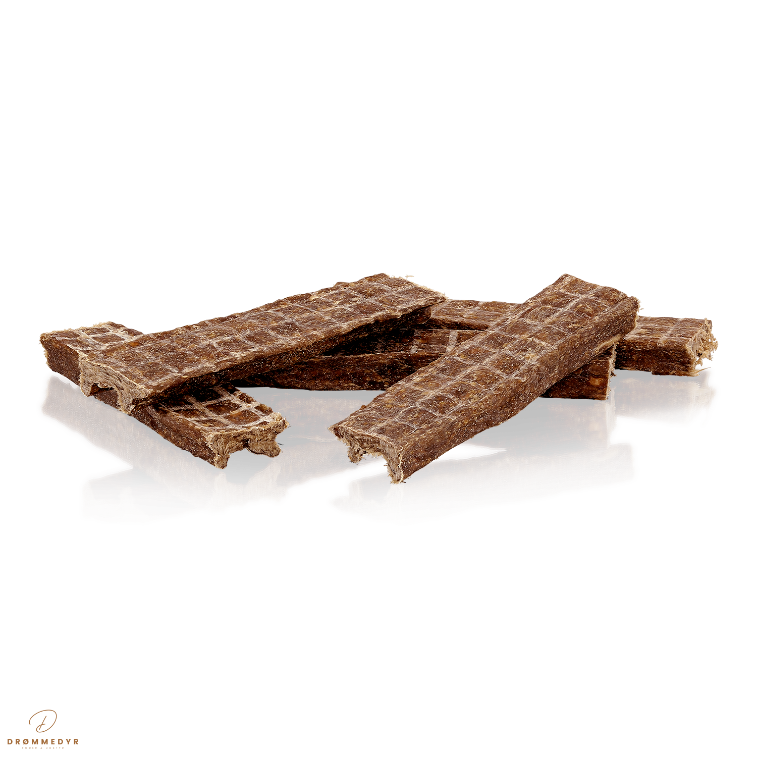 Den faste konsistens fremmer naturlig rensning af tænder og gummer, samtidig med at hunden får tilfredsstillet sit tyggeinstinkt. En funktionel og velsmagende snack, der gør tandpleje til en del af den daglige forkælelse.