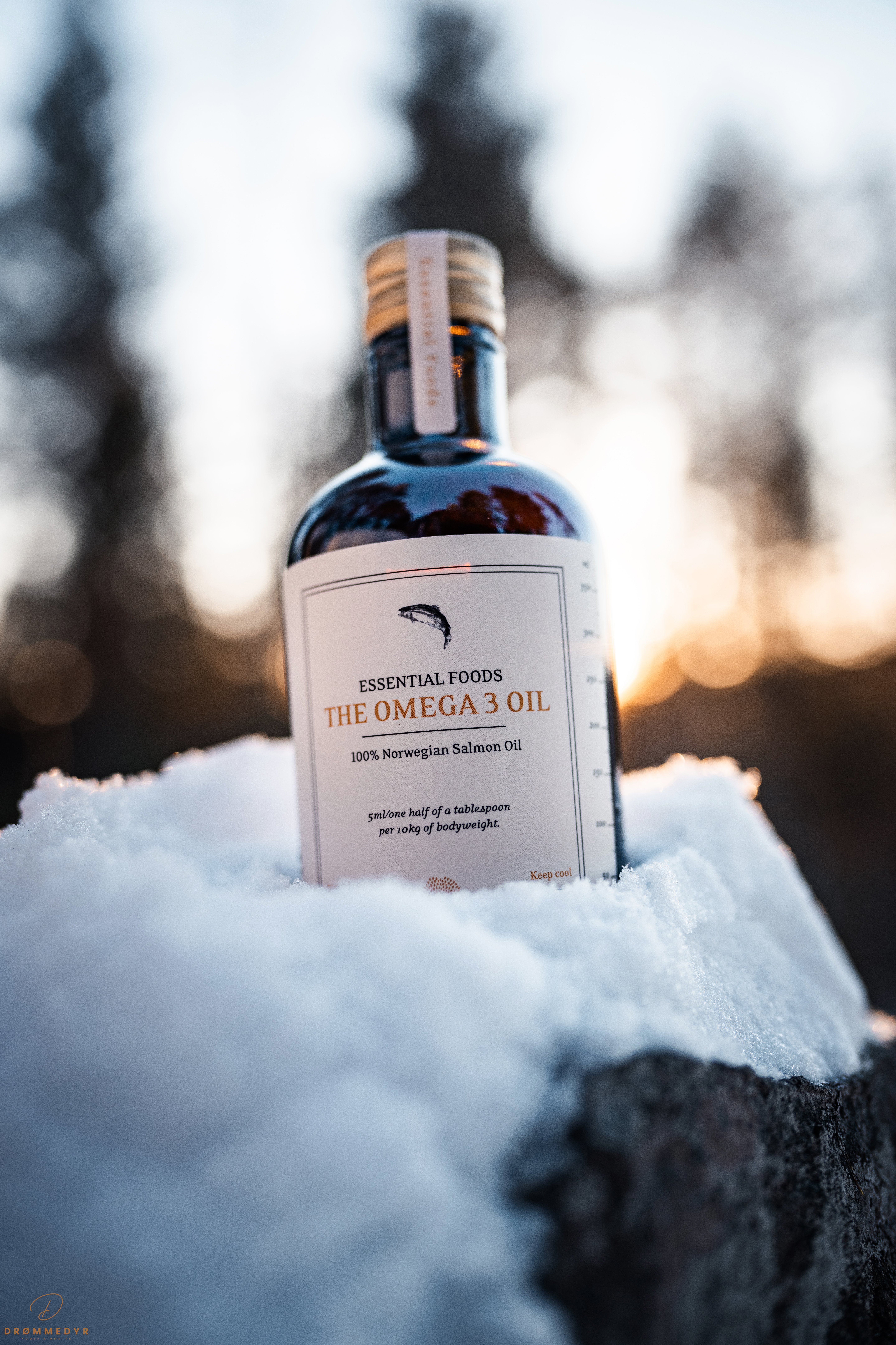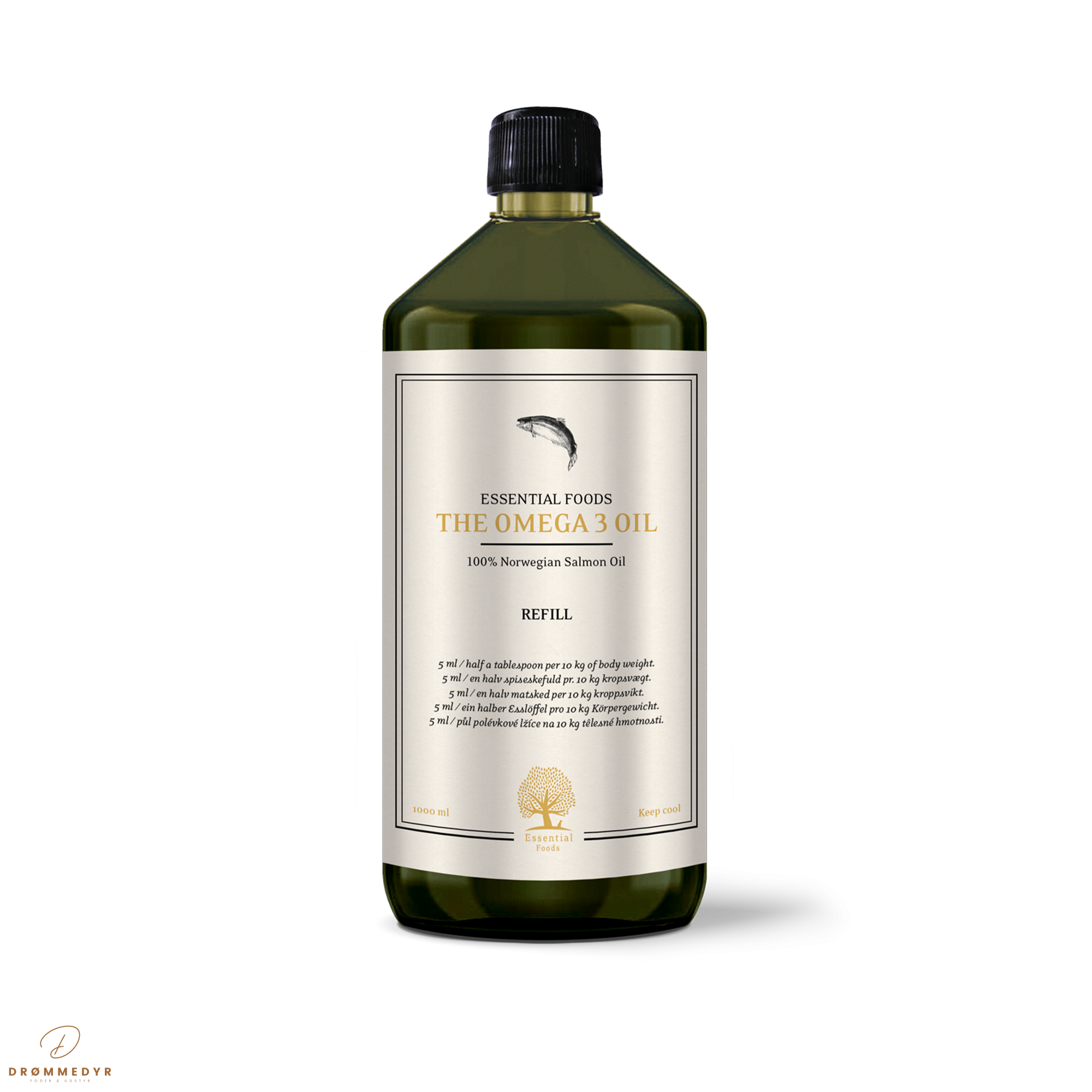 ESSENTIAL The Omega 3 Oil er et 100 % naturligt kosttilskud, der styrker hundens hud, pels, led og generelle sundhed. Olien er rig på essentielle fedtsyrer fra laks, sardiner, ansjoser og makrel – en ren og naturlig kilde til omega-3 af høj kvalitet.
