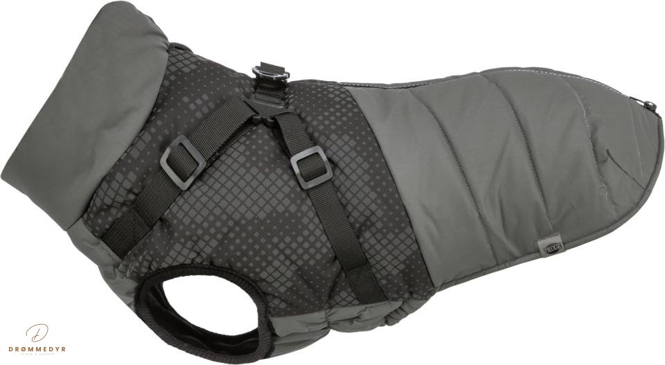 Gør aftenture tryggere med Pontis Reflect dækken i grå! Det lette, vandtætte dækken med indbygget sele giver maksimal synlighed i mørket og holder din hund både sikker og tør – uden besvær.