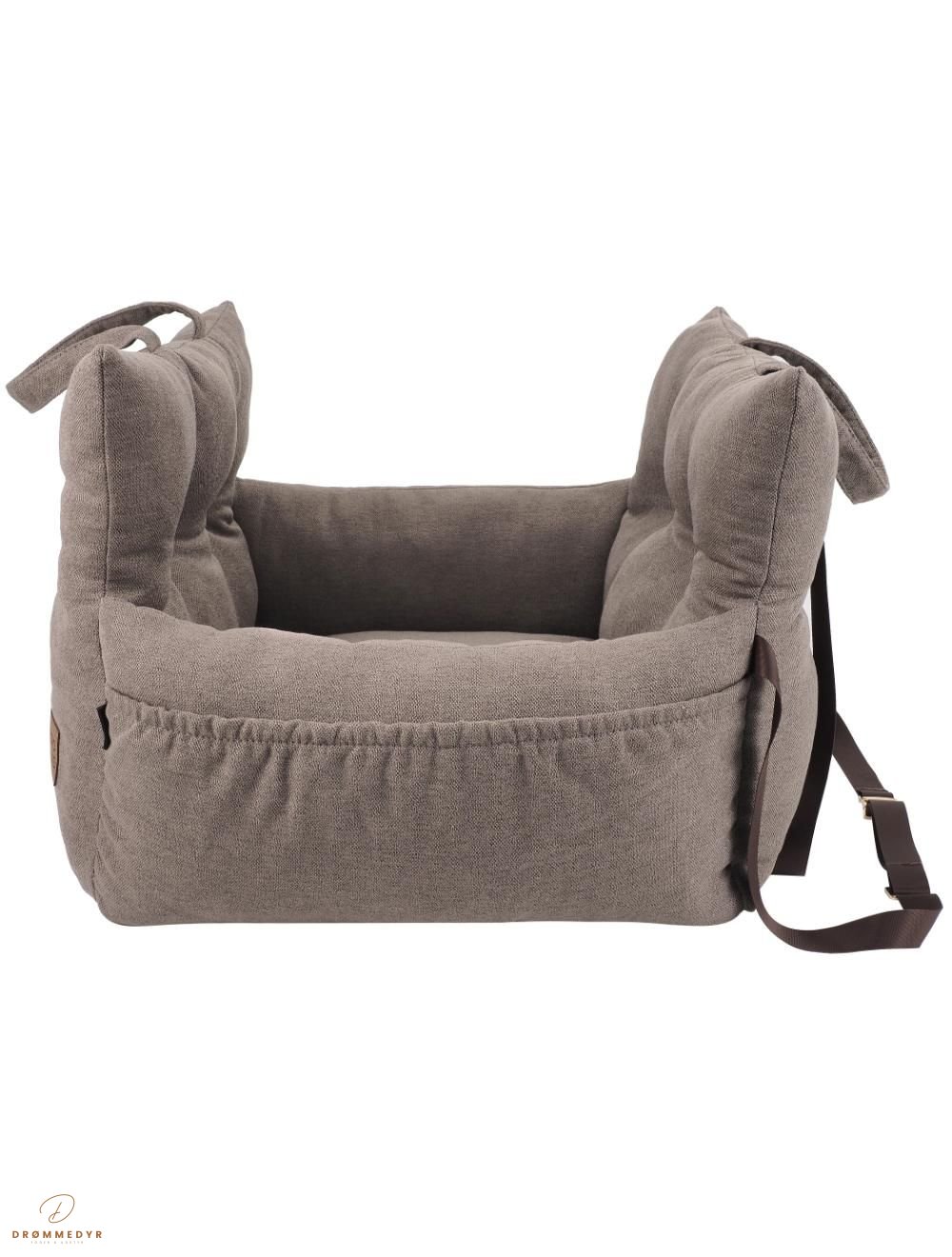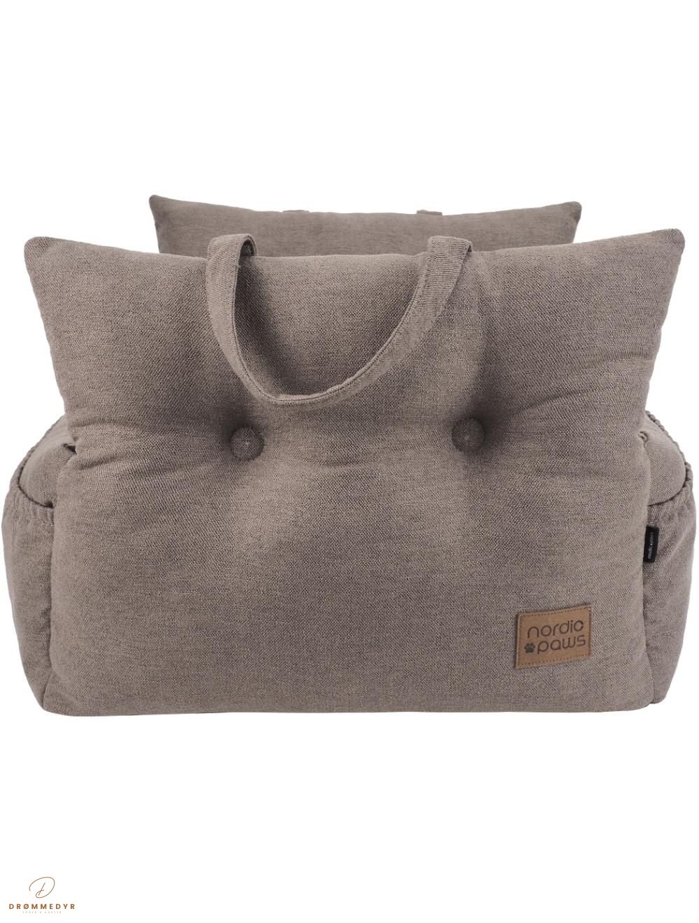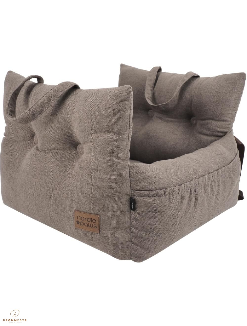 Otto bilsæde af mærket Nordic Paws. Praktisk bilsæde og transporttaske i ét. Sædet giver hunden en tryg og komfortabel plads i bilen med bløde og høje sider. Den aftagelige pude med lynlås gør rengøringen nem, og de solide bærestropper gør det let at tage sædet med ind som en hyggelig hundeseng i hjemmet. Med praktiske lommer til f.eks. høm høm poser, hundesnor eller lignende. Strop til fastgørelse i hundens sele.